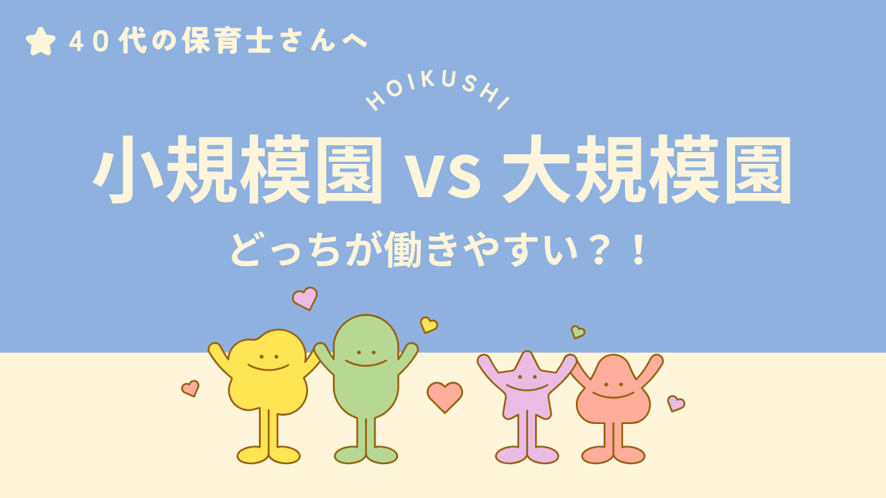 この記事では、40代から未経験で保育士になり転職に成功した私が、人間関係や環境に悩む40〜50代の方へ、実際に利用したことのある私が小規模園と大規模園どちらが働きやすいかを紹介します。